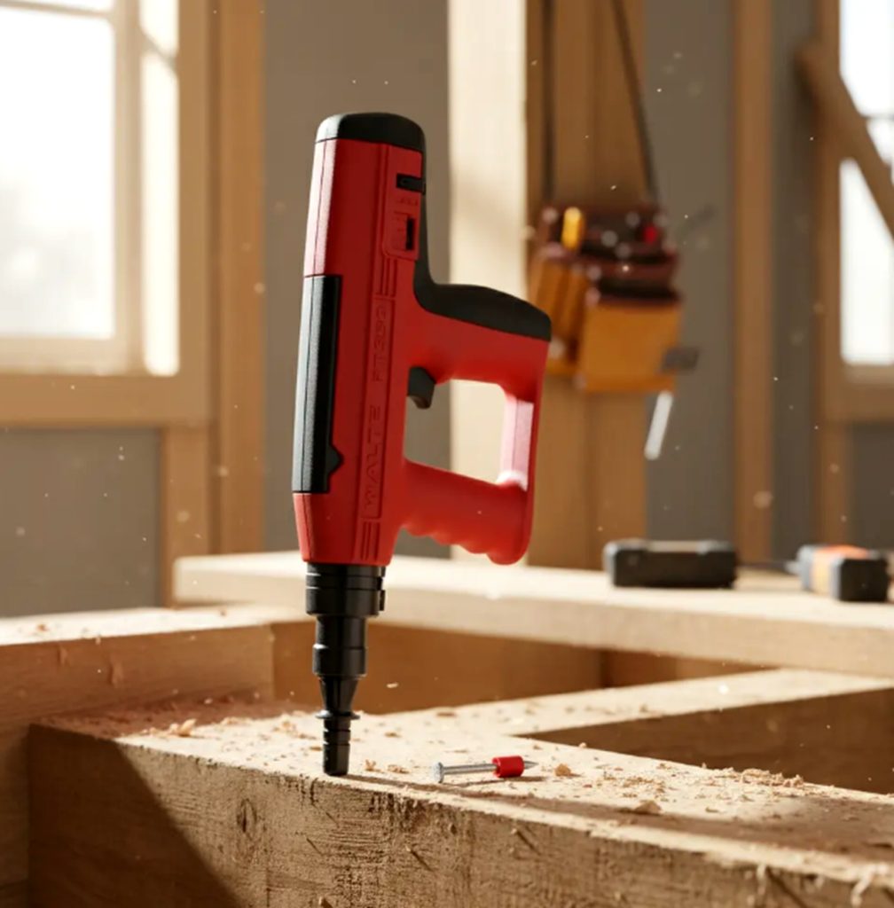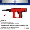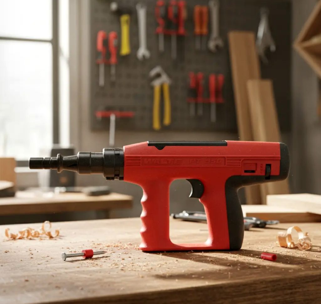PISTOLA DE IMPACTO CLAVO HILTI CALIBRE 27 MOD. PT-950A MARCA WALTE DE FABRICACION TAIWANESA. Esta pistola está especialmente diseñada para uso intensivo en la construcción como así también para uso esporádico gracias por su compacto y resistente diseño. Características: – Disparo semiautomático: a medida que se efectúan los disparos, el fulminante va avanzando. – Con regulador de potencia: SÍ, esto permite con solo el fulminante rojo cubrir el 90% de los requerimientos, es decir permite utilizar todas las longitudes de clavo en un sinfín de combinaciones de materiales (concreto, metal, madera) – Con doble silenciador para una mayor protección acústica. – De diseño compacto que posibilita el acceso a espacios reducidos. – y muy fácil mantención. Datos técnicos: – Rango de longitud de la fijación: ¾ – 3 pulgadas (se pueden utilizar clavos mas largos siempre y cuando lo pre-clave con un combo o martillo) – Regulador de potencia: si – Peso: 2,3 kgs. Accesorios incluidos: – Set de limpieza – Anillo de goma antideslizante – Maletín plástico de transporte – Aceite lubricante en spray.