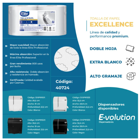 La toalla de cocina de la marca Elite Professional es la solución ideal para quienes buscan calidad y eficiencia en su día a día. Con 200 hojas de doble capa, cada una de 19 cm de longitud, garantiza una máxima absorción, permitiendo limpiar y secar con facilidad cualquier superficie. Este producto se presenta en un pack de 2 unidades, asegurando que siempre tengas a mano una toalla confiable para tus tareas culinarias. Su diseño práctico y funcional es perfecto para el hogar, restaurantes o cualquier entorno donde la limpieza y la higiene sean prioritarias. La toalla Elite Professional es resistente y duradera, lo que la convierte en una opción económica y efectiva para el uso diario. Su capacidad de absorción superior la hace indispensable en la cocina, facilitando la limpieza de derrames y el secado de utensilios. Optar por esta toalla es elegir un producto que combina calidad y rendimiento, mejorando tu experiencia en la cocina.